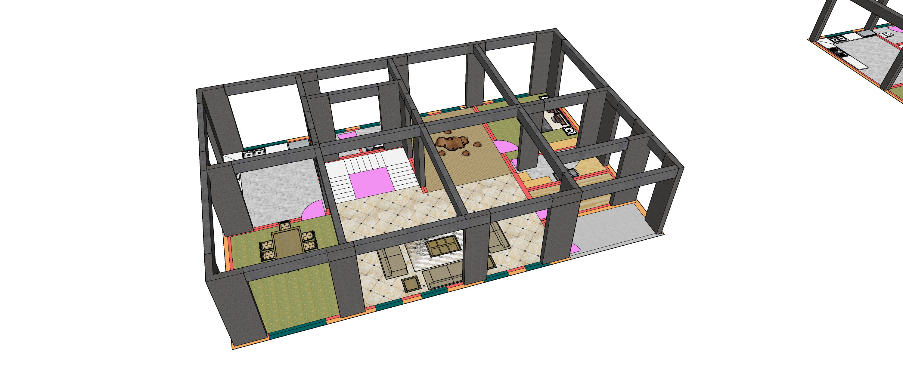 一個住宅的整體結構和內部的生活空間是兩回事。建筑結構提供了一個無特征的、開放的“大盒子”,而真正滿足我們生活需求的、有意義的空間,是通過后期的隔墻“劃分”出來的生活空間。
